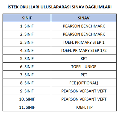 İSTEK Okullarında anaokulundan lise son sınıfa kadar yoğun bir İngilizce programı yürütülür. Hedefimiz yaş düzeyleriyle paralel olarak öğrencilerin dilin dört becerisini (okuma, dinleme, yazma, konuşma) etkin şekilde kullanabilmeleri, yazılı ve sözlü olarak kendilerini ana dillerinde olduğu gibi ifade edebilmelerini sağlamaktır. Müfredat programları her seviyede Diller İçin Avrupa Ortak Öneriler Çerçevesi (Common European Framework – CEF) programı çerçevesinde tasarlanmakta ve uygulanmaktadır. Öğrencilerimiz akademik çalışmaların yanı sıra uluslararası Cambridge ESOL, DELE, Fit in Deutsch, IELTS, TOEFL, Trinity gibi sınavlara da hazırlık çalışmaları yapmaktadır.